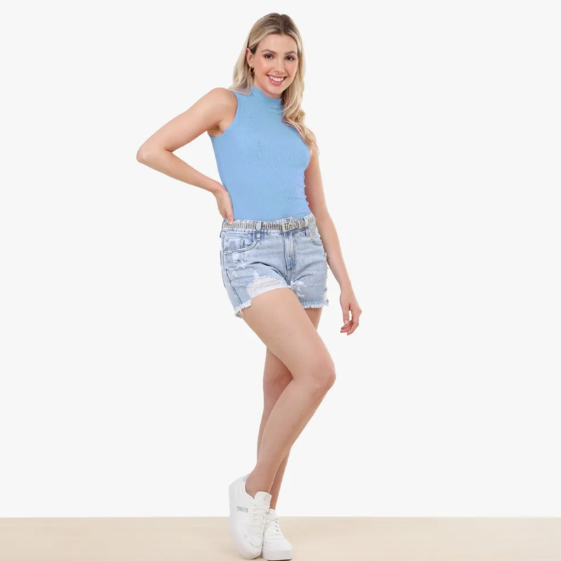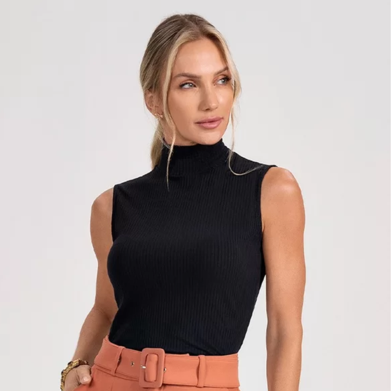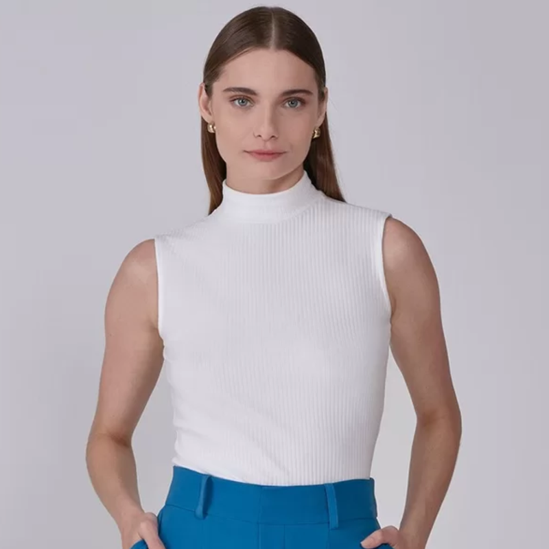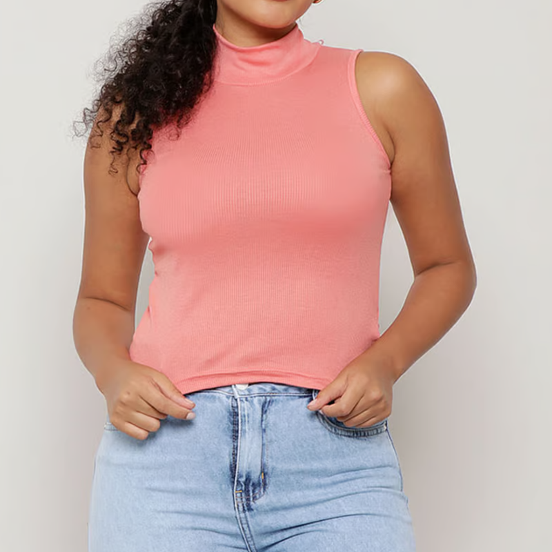 Cropped Malha Canelada Regata Gola Alta - Cores Variadas